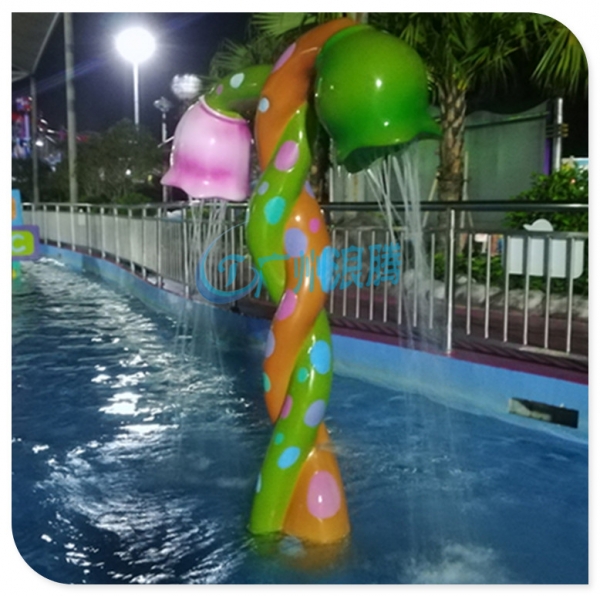 水上樂園設(shè)備戲水小品雙花噴水LT-SH17115整體設(shè)計(jì)為兩株互相纏繞的花藤,頂上是兩個(gè)噴水花蕾。讓孩童仿佛置身于童話王國,蕩漾在花海的世界里。讓孩子在愉快的玩耍過程中放松身心,并對(duì)鮮花植物加深認(rèn)識(shí)。特別適合水上樂園設(shè)備親子戲水樂園兒童戲水池中的一款輔助設(shè)備,大人小孩一起玩,還能增加家庭親子感情。創(chuàng)建和睦家庭關(guān)系。同時(shí)也可以跟周圍的兒童水上樂園設(shè)備組成景觀點(diǎn)綴,增添熱鬧有趣的氣氛;形成一種親子水上樂園的氛圍!