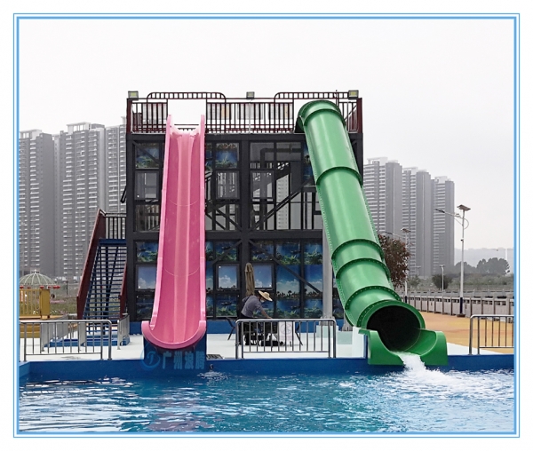水上滑梯炮筒雪撬滑梯是經(jīng)典的雙道組合滑梯,有造價底,占地面小,體驗獨特等特點。都可直接用身體滑行,炮筒滑梯不封閉的滑梯,進去后是看不見外面的黑洞,瞬間下沖到落水池當中,特別適合喜歡探險,挑戰(zhàn)速度的年輕人玩樂;雪撬滑梯為敞開式滑梯,末端有向上拋的趨勢,游玩時會有被上拋向前3~5米再掉到水池當中,體驗奇妙獨特,特別適合挑戰(zhàn)刺激的年輕人玩樂。有5米平臺和6米平臺可供選擇,雪撬滑梯內(nèi)寬為:0.8米,炮筒滑梯內(nèi)寬為:1米。