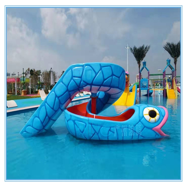 蛇形滑梯LT-XS1702設(shè)計獨特,藍色蛇身點綴深藍色菱形鱗片。宛如一條藍色大蟒蛇盤旋于戲水池中間。是水上樂園設(shè)備戲水小品中人氣項目之一,十分受小朋友青睞,蟒蛇的外形設(shè)計,奕奕如生,讓小朋友感覺是騎在蟒蛇背上滑下來,刺激又好玩。