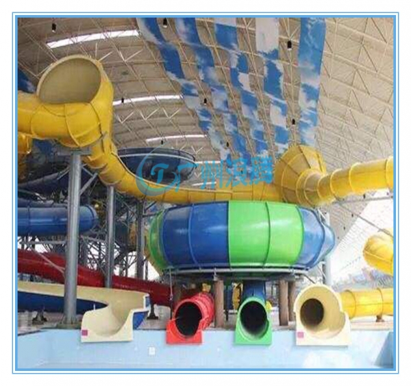 翻江倒海滑道,游客從15-19米空平臺(tái)乘著可以容納4個(gè)人的四葉草形皮筏浮墊滑進(jìn)滑道,經(jīng)歷一段奇妙之旅。高速穿越一段二十多米的螺旋滑槽后,進(jìn)入一個(gè)巨大封閉圓形的球體中,急速旋轉(zhuǎn),從球體出來(lái)后又旋轉(zhuǎn)滑行至滑道,旋轉(zhuǎn)數(shù)圈后落到池子。將帶給你與眾不同的滑行快樂(lè)體驗(yàn)。一般做兩條到多條。由于該設(shè)備體積龐大,形狀獨(dú)特壯觀可以作為大型水上樂(lè)園設(shè)備中的拉票賣點(diǎn),標(biāo)志性設(shè)施。